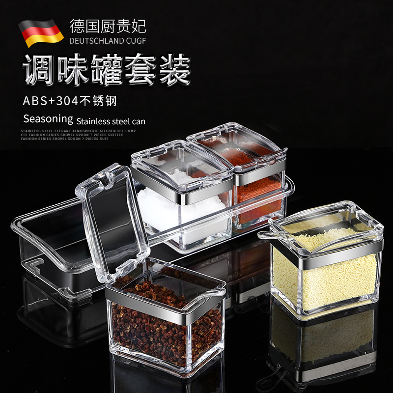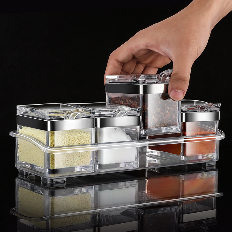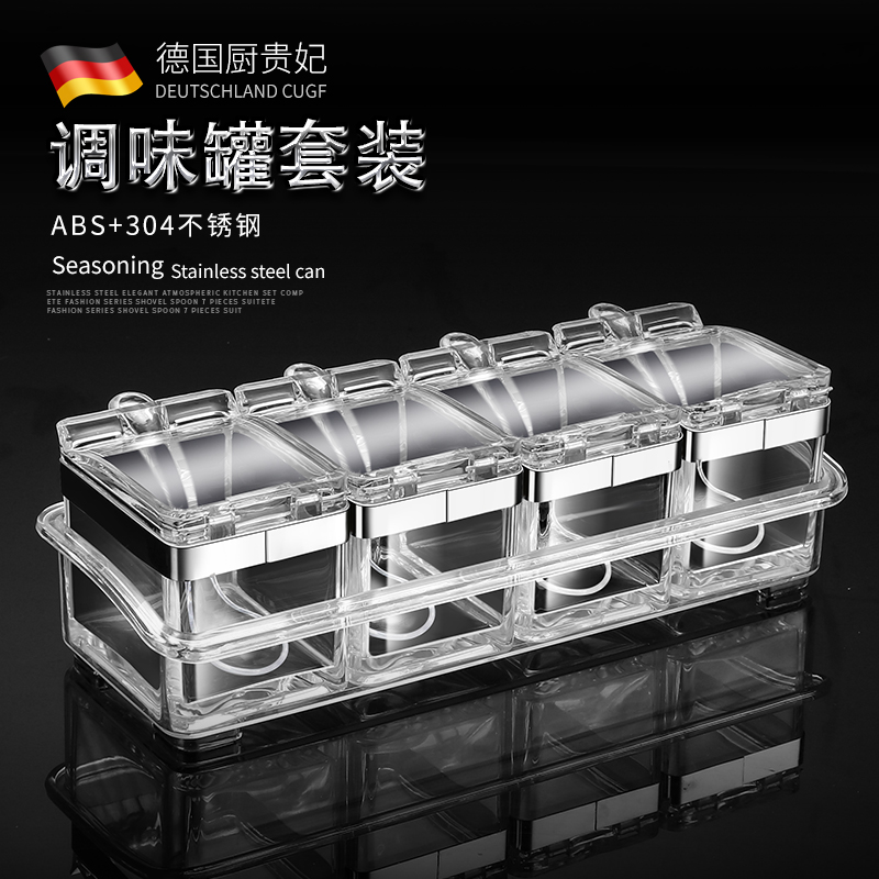 Kitchen Salt MSG Seasoned Box Four Grits Combined With Seasoned Jars Household Seasoned Kit Damp salt Salt Tank