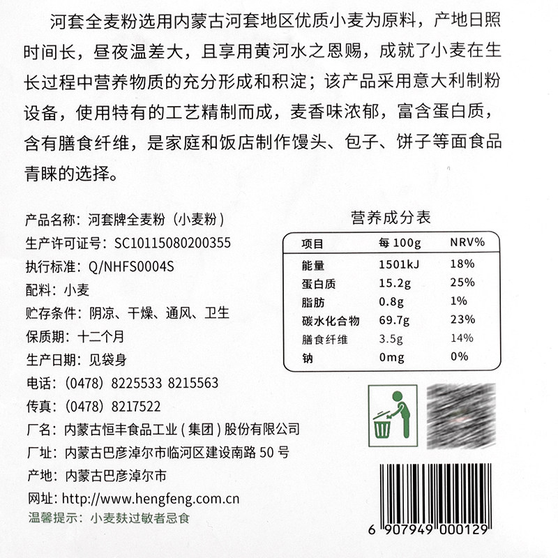 Hetao flour whole wheat flour 1kg × 1 bag of whole wheat flour baked coarse grain bread bun contains dietary fiber