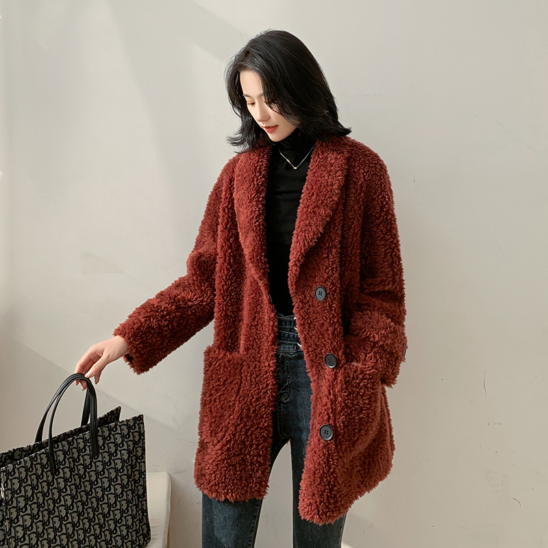Australian grain lamb wool coat sheep shearling coat women's mid-length version of casual fur all-in-one fur 2022 new