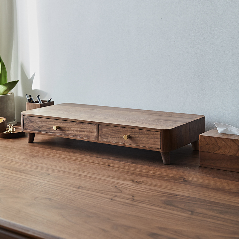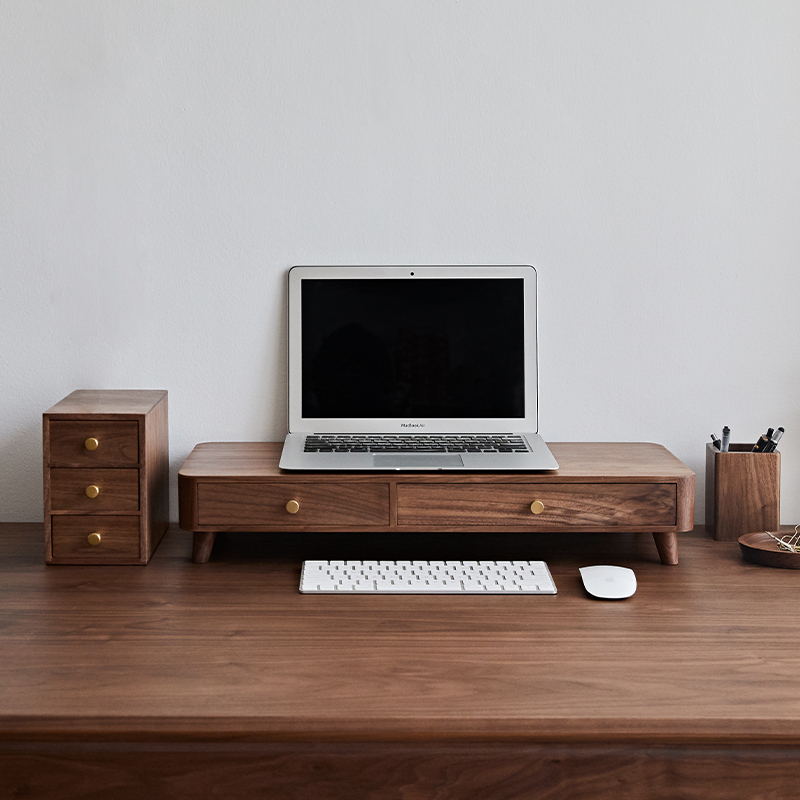 Fanhan solid wood drawer rack office home computer increased rack walnut desktop storage cabinet