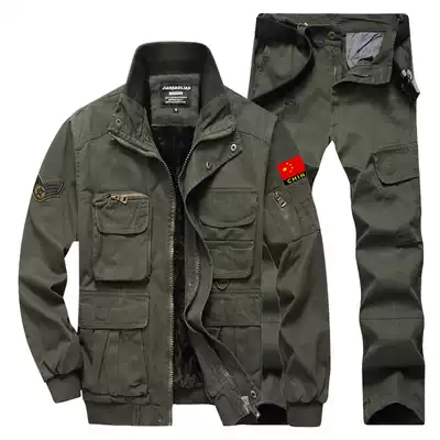 Camouflage suit suit men's autumn and winter plus velvet thick wear-resistant and warm military uniform Chinese overalls work training military industry