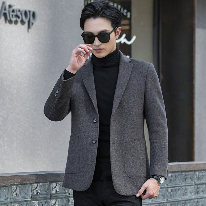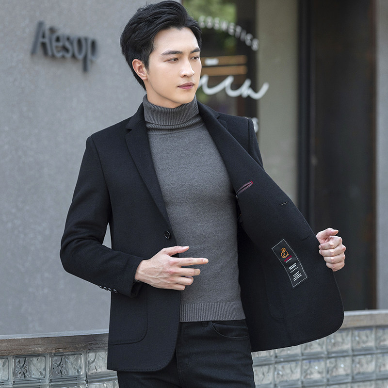 Wool suit men's youth fashion woolen coat men's British Korean version of self-cultivation temperament thick small suit tide