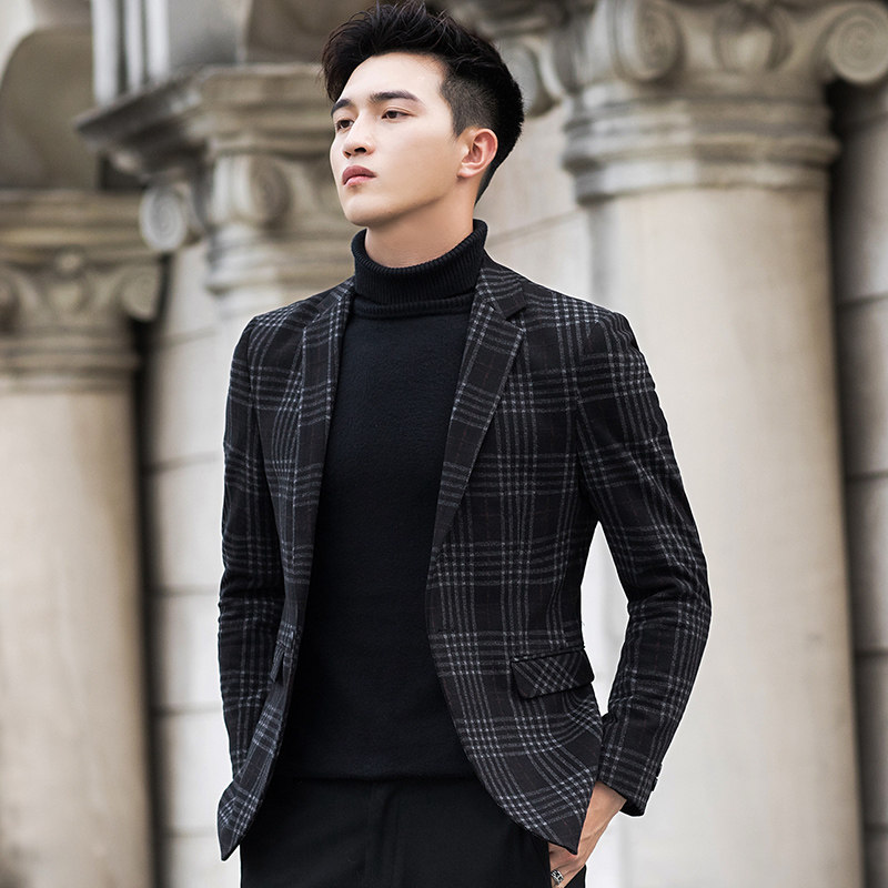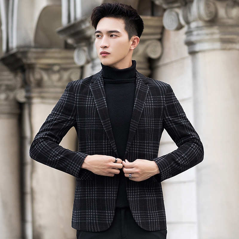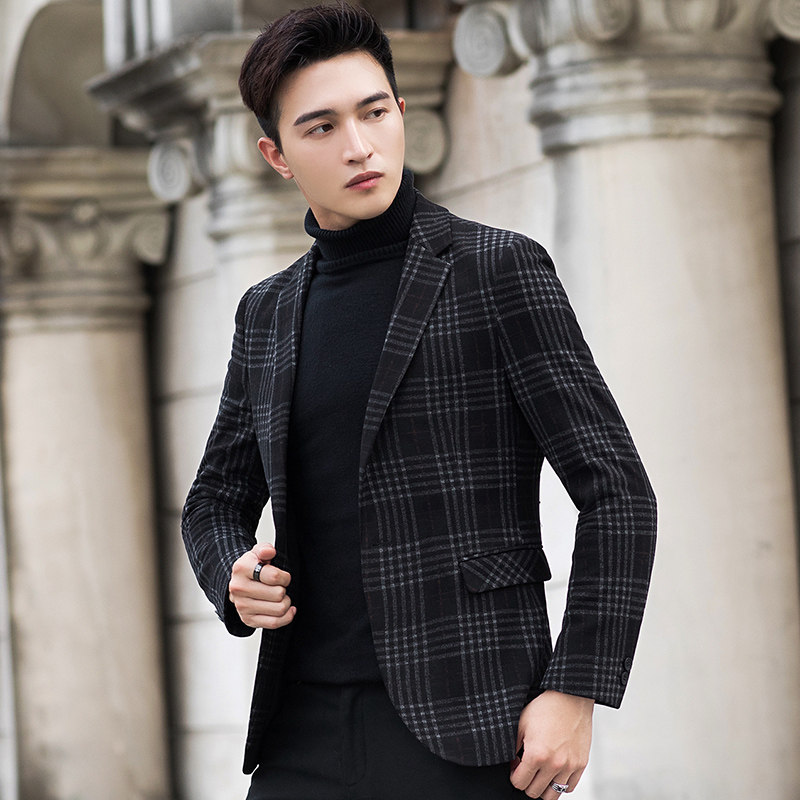Autumn and winter new style thickened British plaid suit male woolen jacket Korean version slim small suit single west jacket tide