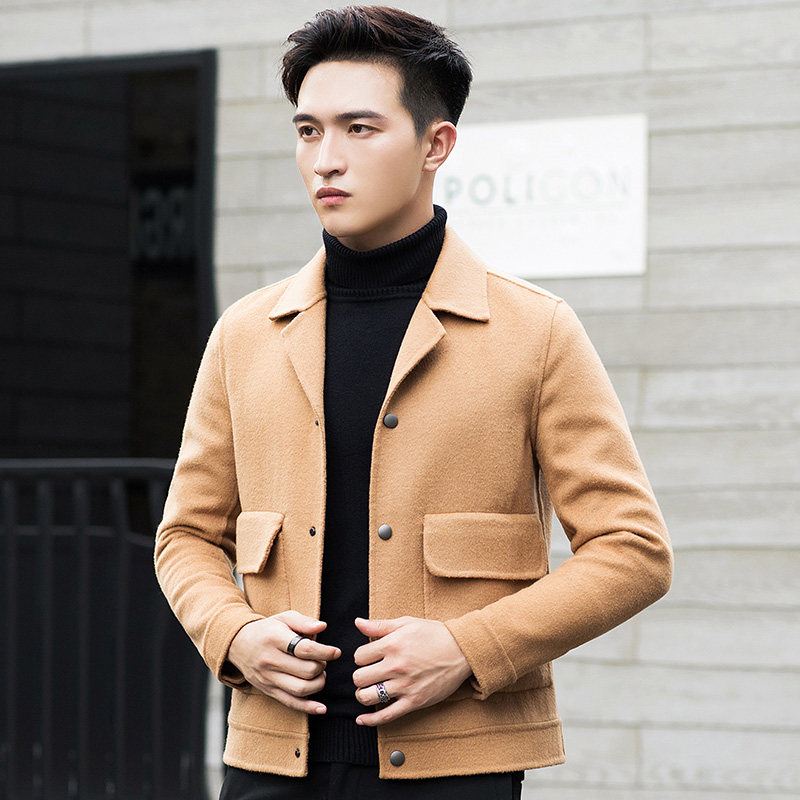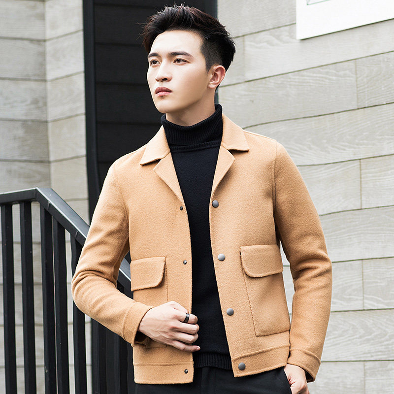 Autumn and winter wool coat Men's short wool hand-made double-sided jacket cashmere-free coat Jacket men's tide