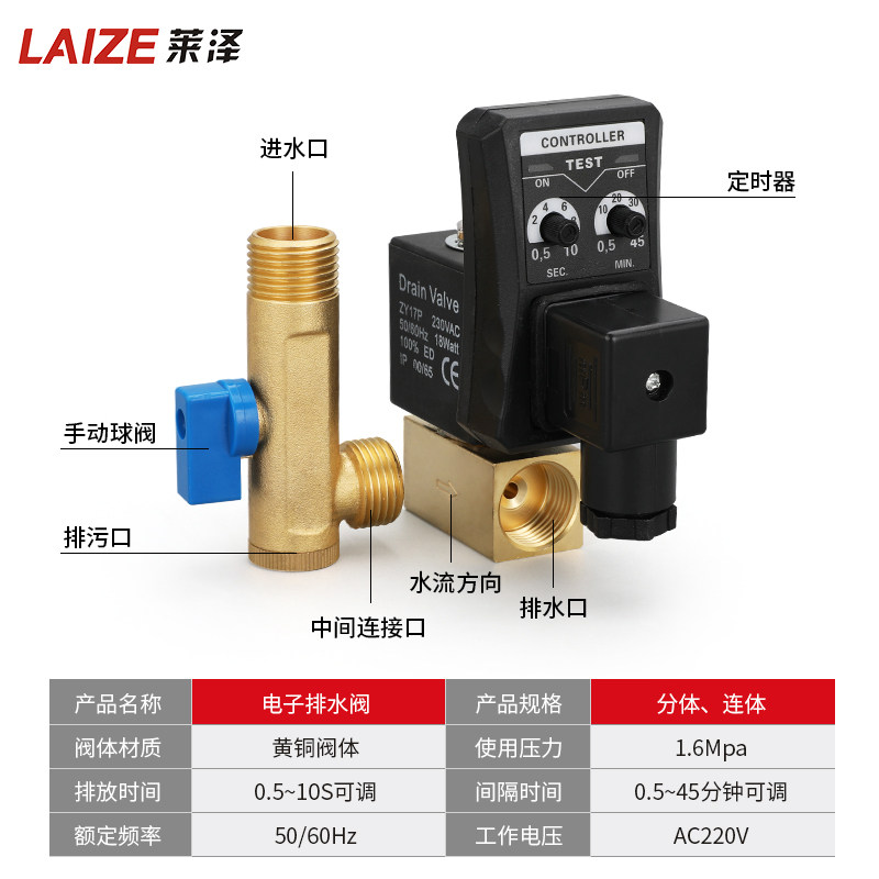 Laize electronic drain valve automatic switch OPT-A split OPT-B conjoined drain valve timing solenoid valve
