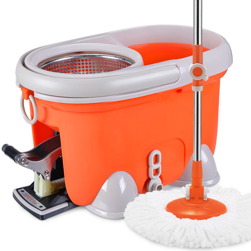 David God drags his hands and presses his feet and steps on an automatic rotating mop bucket four-drive rotating topological mop topological mop