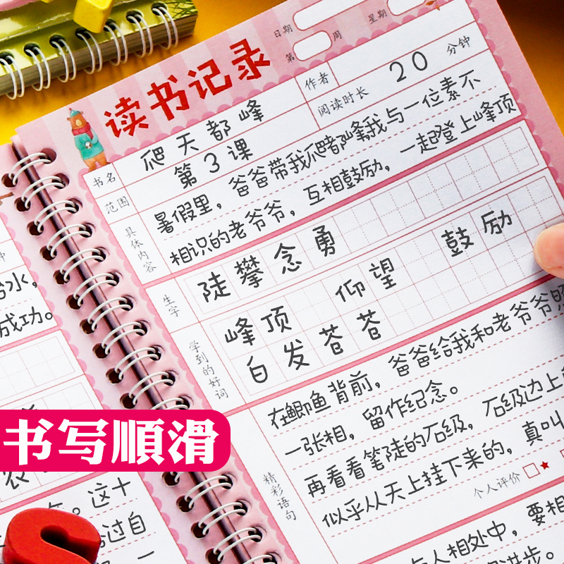 Elementary school students reading record book reading notes special notebook reading excerpt punch card record card first grade second grade Chinese good words good sentence excerpts sentence excerpts accumulate over time