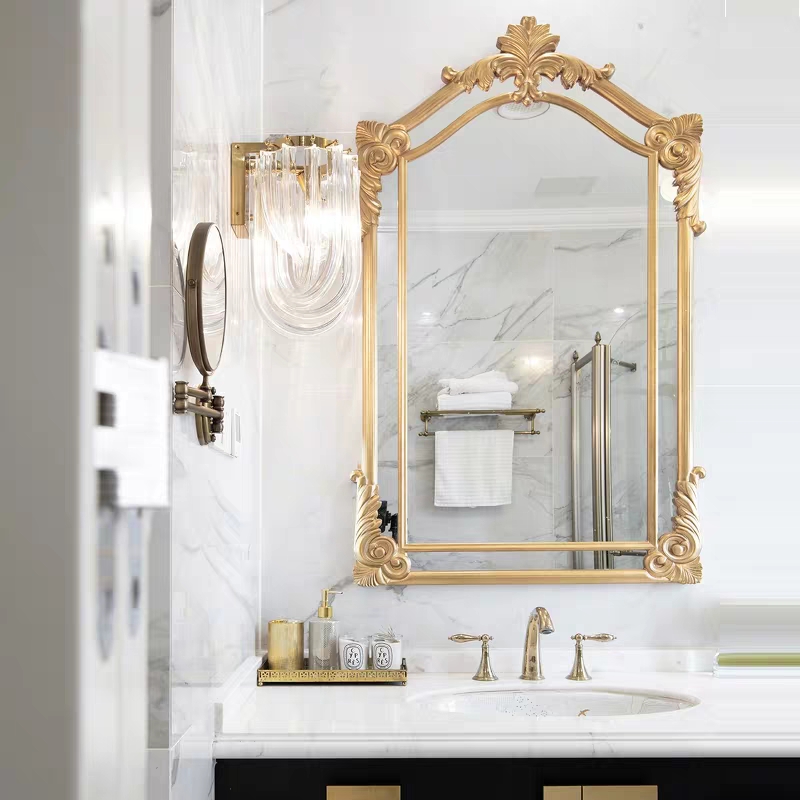 Eurostyle Retro Sculpture Floral Decoration Mirror Home Bedroom Cosmetic Mirror wall Cosmetic Side Mirror Wash Room room Bathroom Mirror