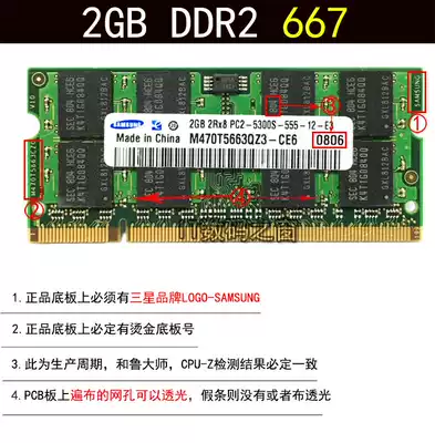 Samsung original DDR2 800 2GB PC2-6400S laptop memory compatible 667 533