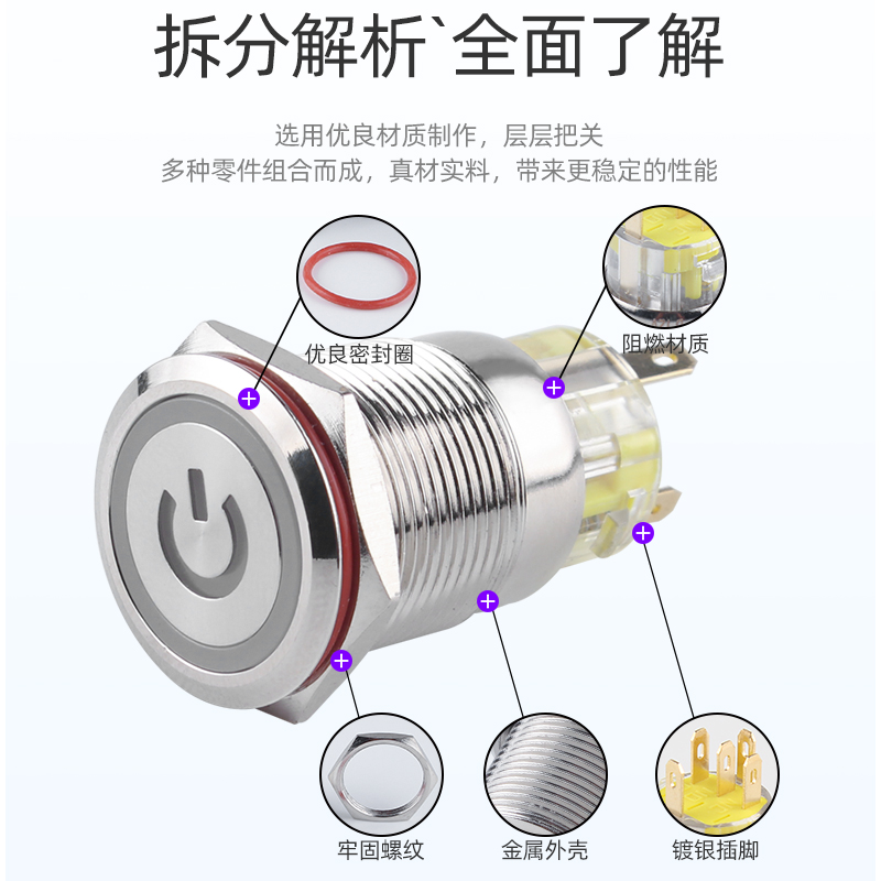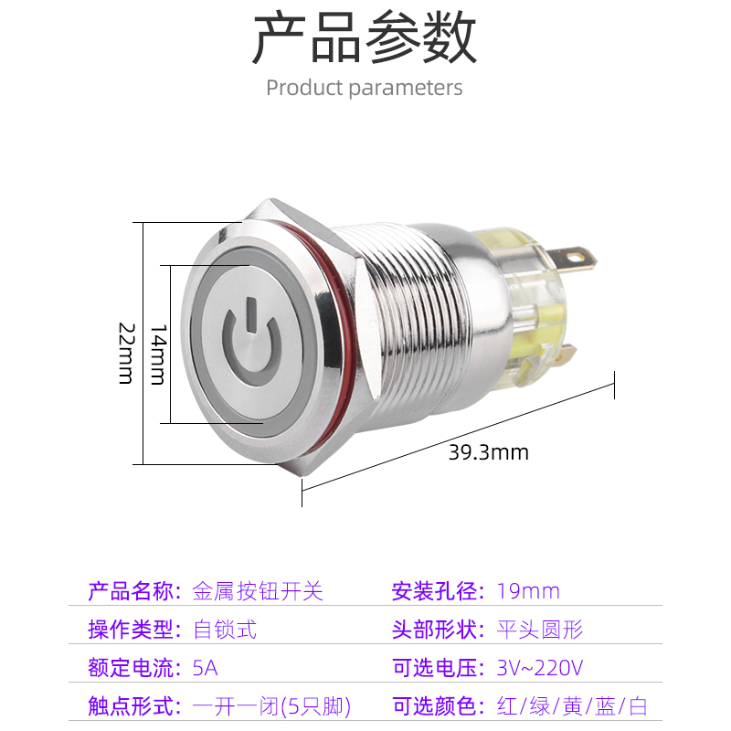 19mm metal button switch self-lock with lamp ring power retrofit start stop 12v 12v 24v 220v