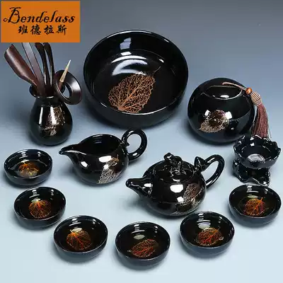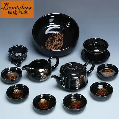 14 black glazed gold leaf West suit pot bowl set 14 black glaze gold leaf Yanzheng pot lid Bowl set 13 black glaze gold leaf Xishi pot cover Bowl set 13 black glaze gold leaf Yanzheng pot lid Bowl set 17 black glaze