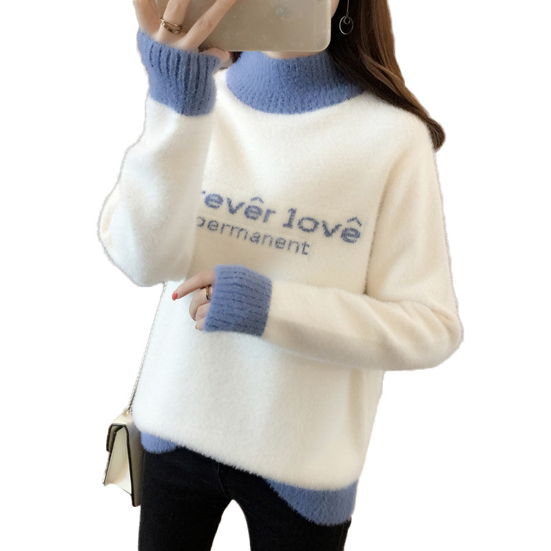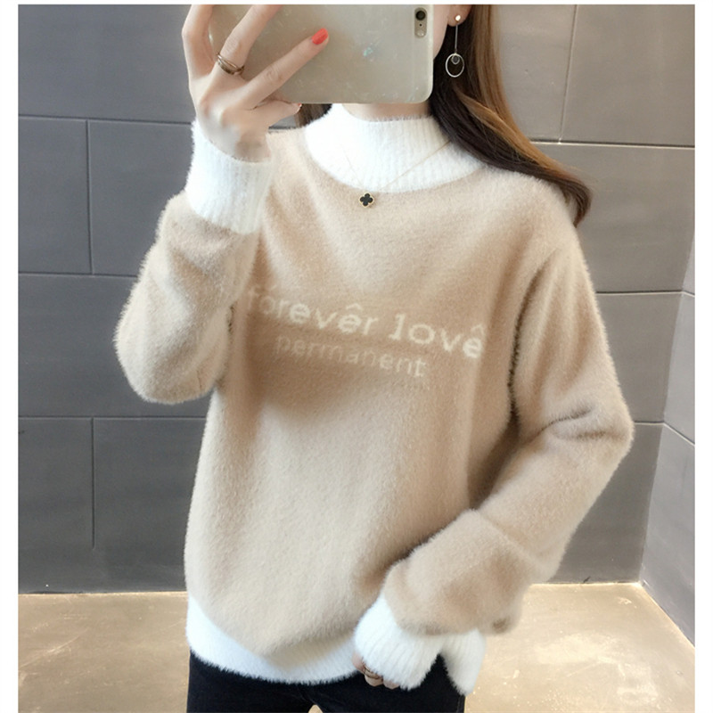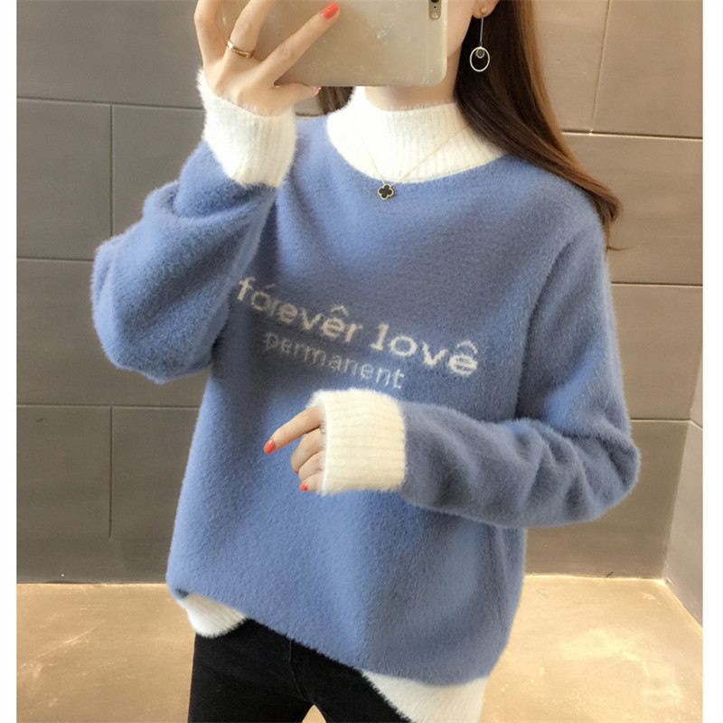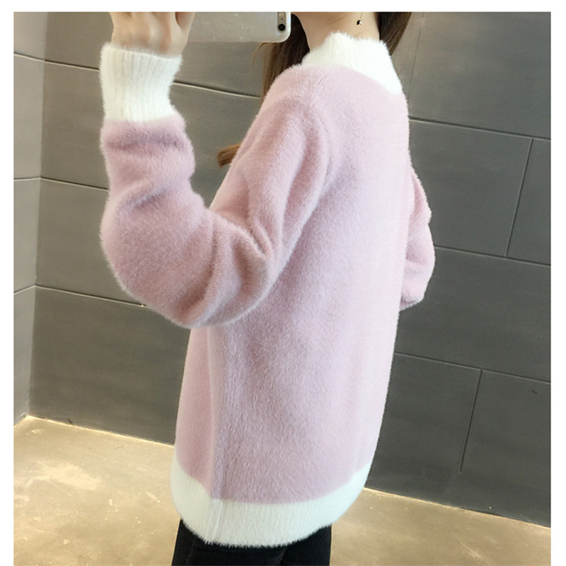 Sweater women's 2021 new fashion foreign to wear a knitted sweatshirt loose imitation ferret jacket head thickened to beat the undershirt winter