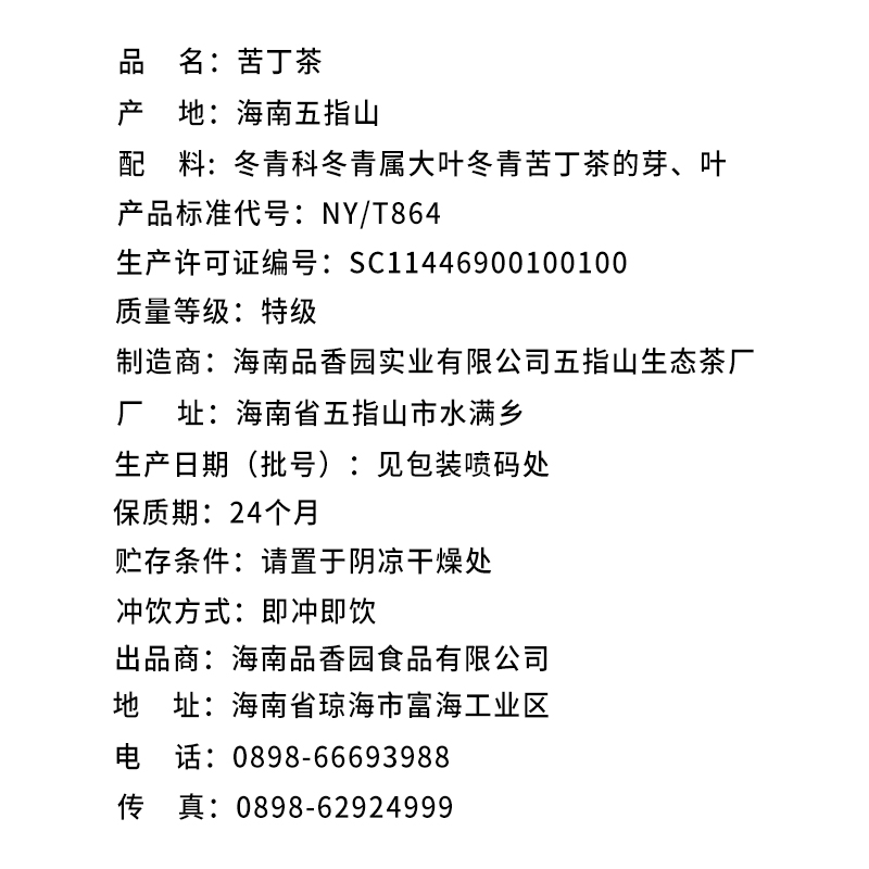 Hainan Special Products Fragrant Garden Hainan Bitter Ding Tea 100g Gift Boxes of 5-finger Mountain Tea Small Packaging