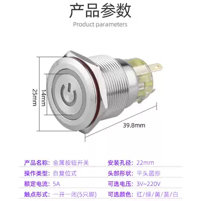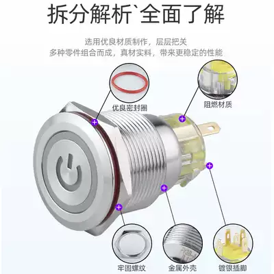 22MM RING power light metal computer button switch waterproof round LED with light small desktop self-reset
