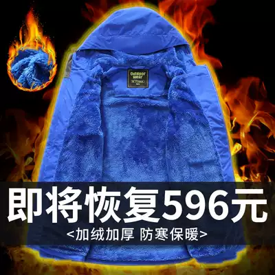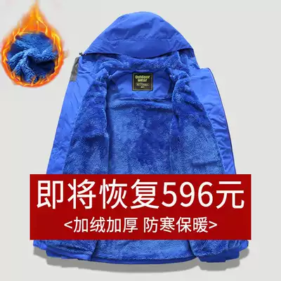 Outdoor jacket men's autumn and winter plus velvet thickened coral velvet jacket warm women windproof waterproof sports mountaineering suit