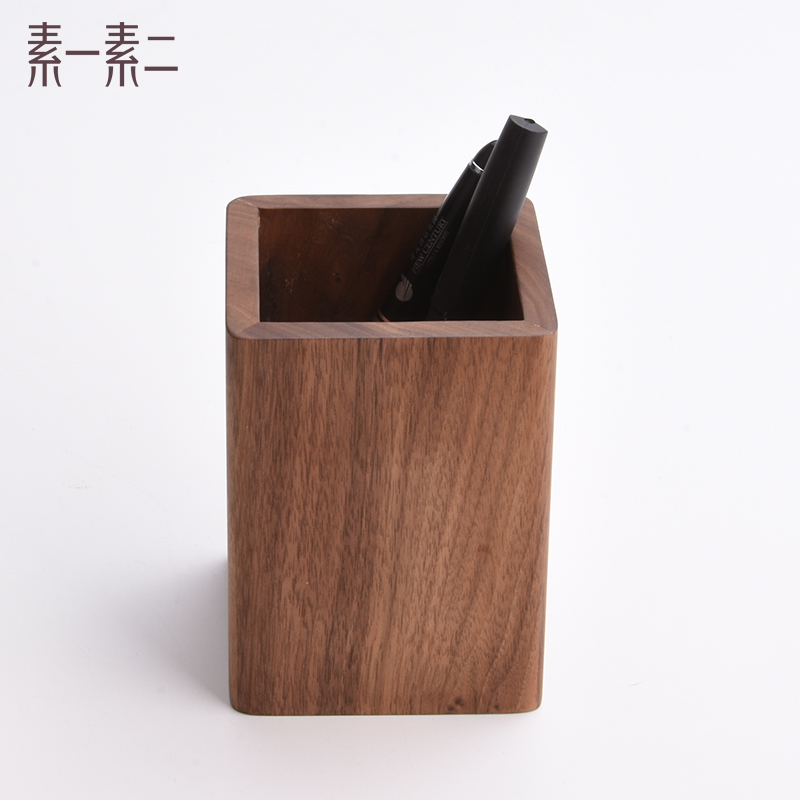 Walnuts square pen holder (lettering for lettering and custom can contact customer service) Hupeach wood double lattice pen holder (such as required lettering custom can contact customer service)