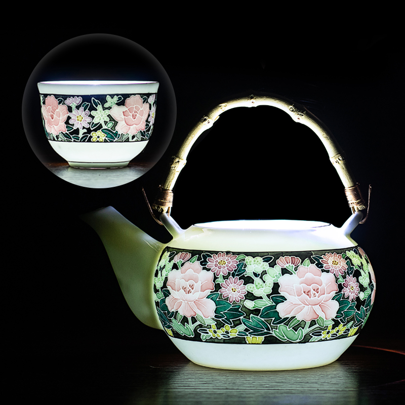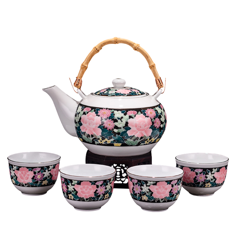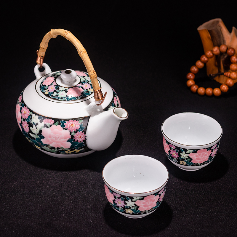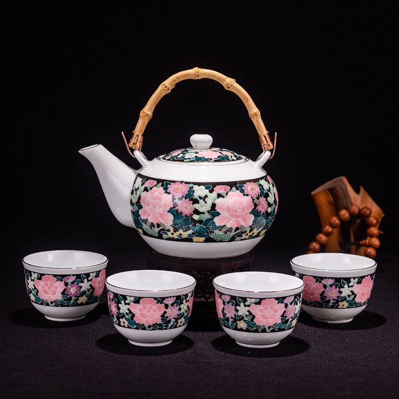 90's 118 hall porcelain official kiln old porcelain black bottom full of flowers hand-painted kung fu tea set old-fashioned teapot Hongjiang big ball mud