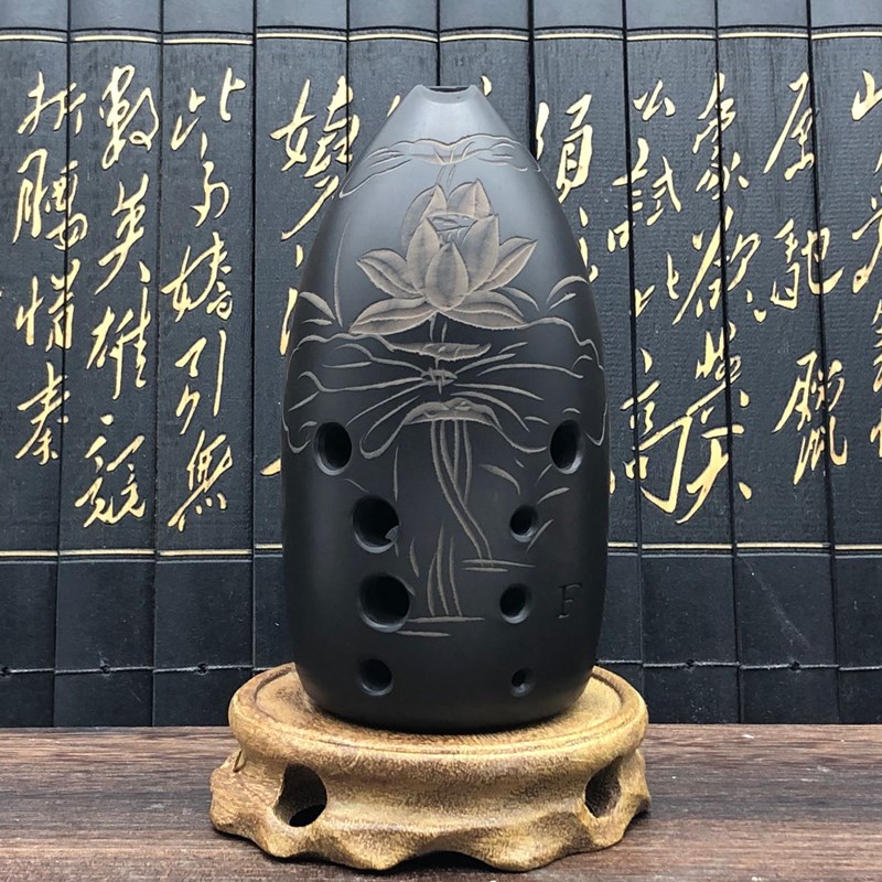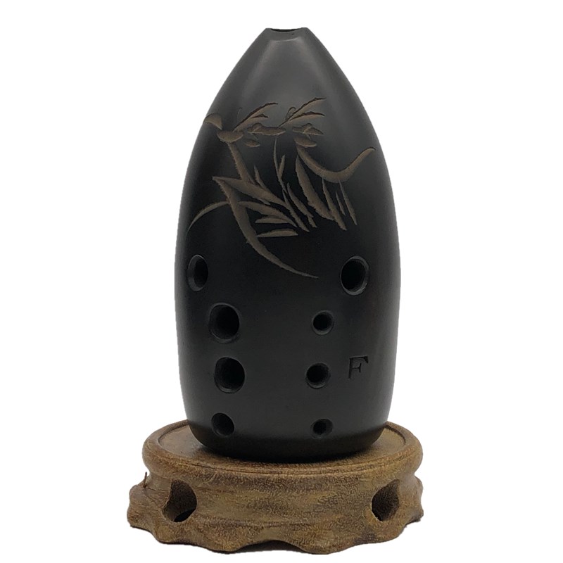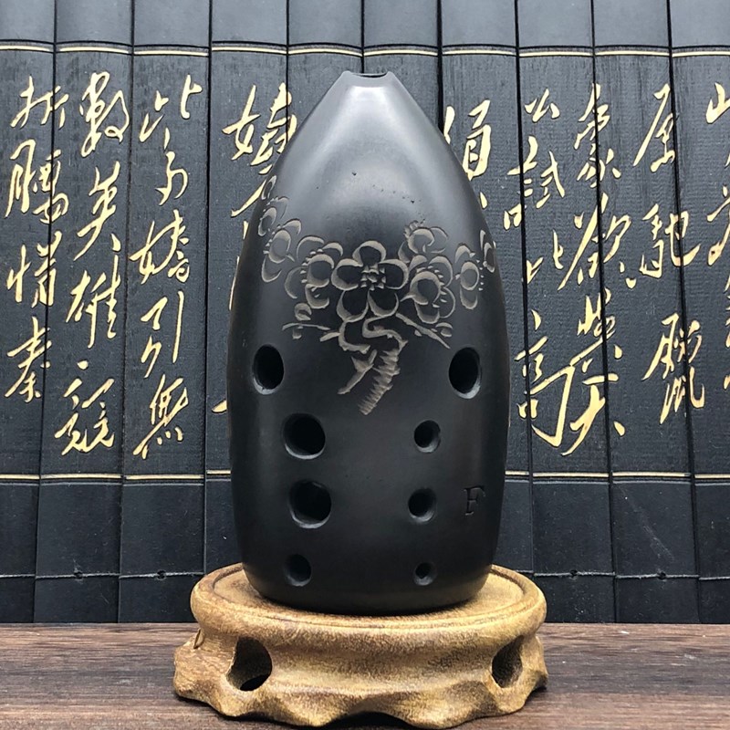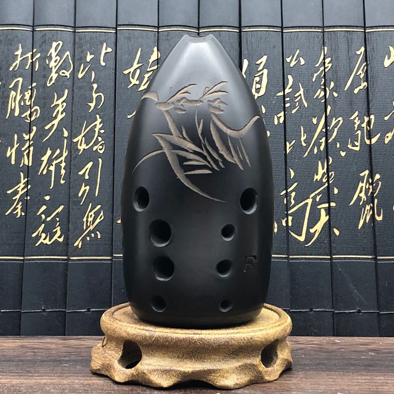 Wind ballad black pottery warhead professional playing exam level 10 holes ten holes double cavity beginner gu cheng F tuning pen holder instrument