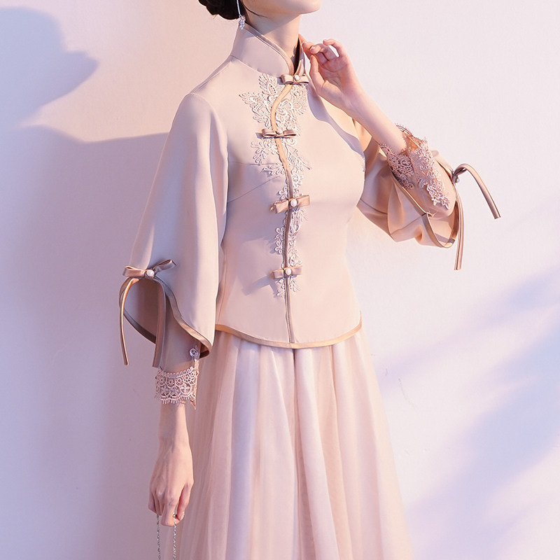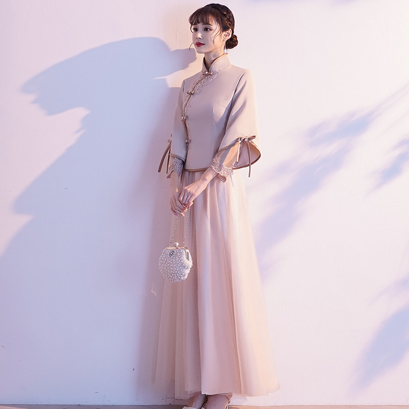 Chinese bridesmaids clothes show and 2022 new spring and autumn Han clothes qipao with long sleeves and sisters group gown with ancient Chinese wind