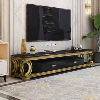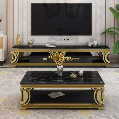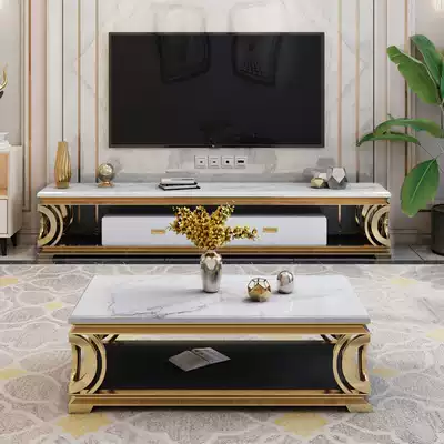 Light luxury marble TV cabinet coffee table combination modern simple living room large and small apartment stainless steel floor cabinet tea table