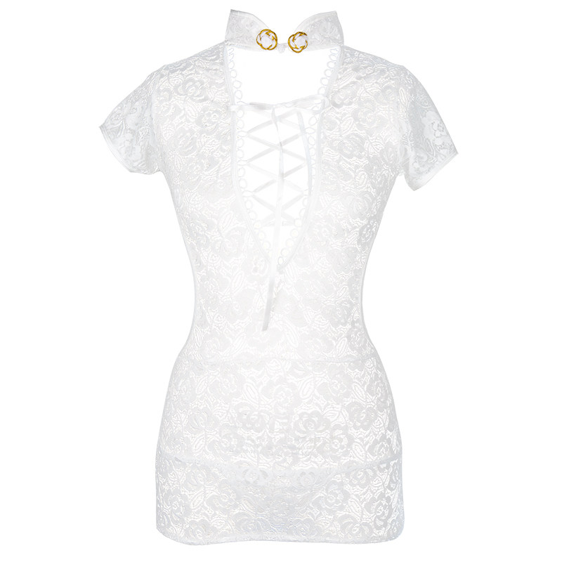 iosgirl lace perspective hollowed-out strap to collect waist dew back retro Chinese wind short flag gown 9340