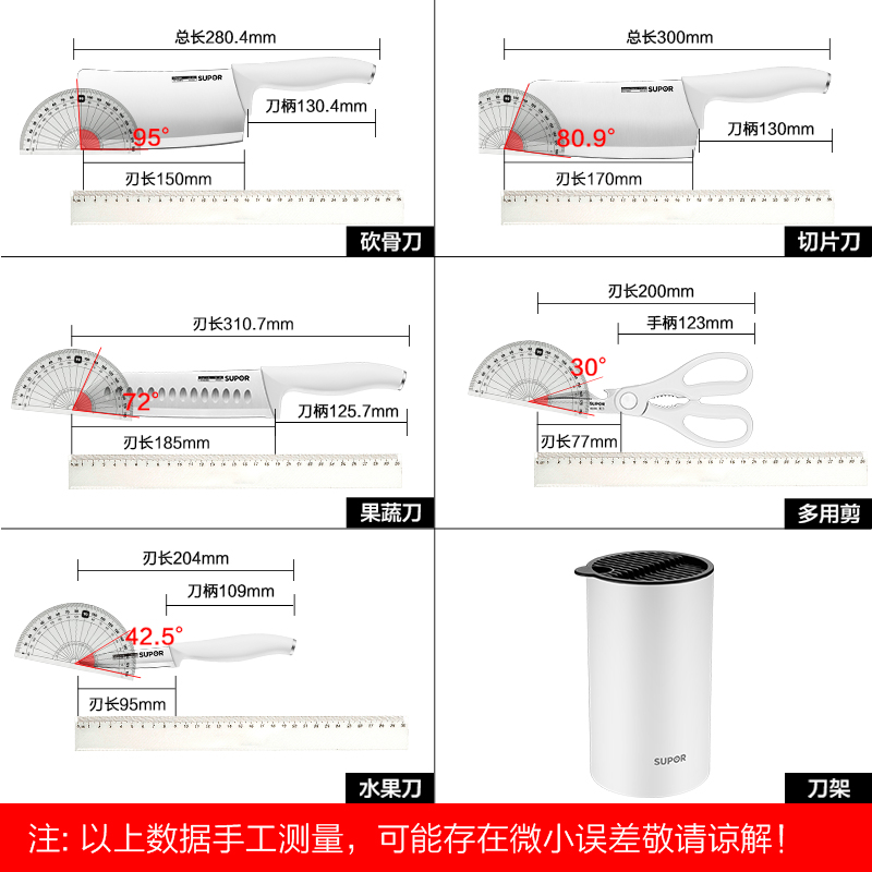 Supor Knife Set Kitchen Knife Home Kitchen Full Kitchen Knife Six-piece Chopping Chopping Knife Cutting Board Combination Package