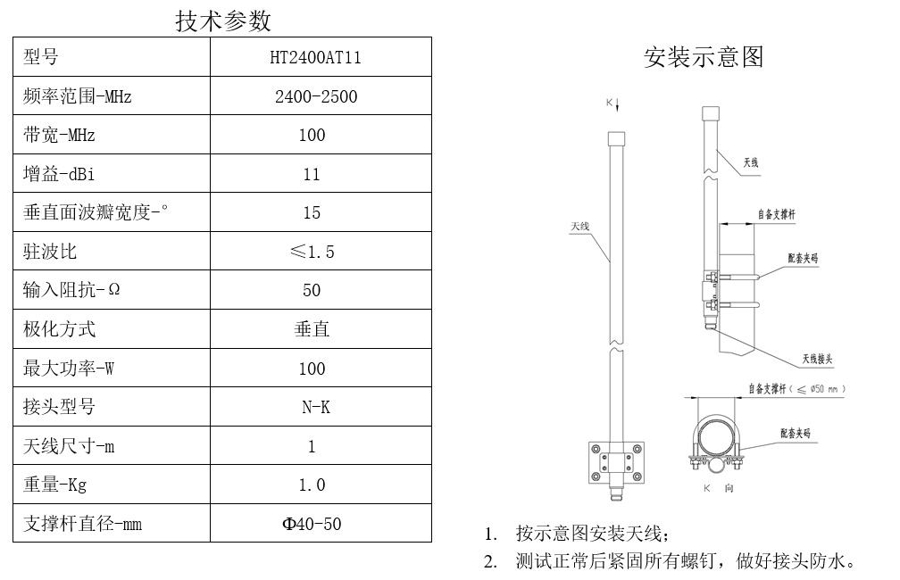 2 4G glass fiber omnidirectional antenna 11DB with clamp N female head spot outdoor AP with 2400-2500MHZ