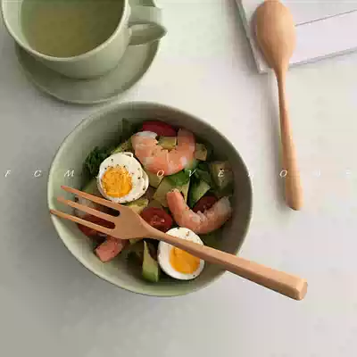 FCMJ Japanese log fork spoon Wooden fork spoon good-looking solid wood fork spoon Soup spoon Pasta fork