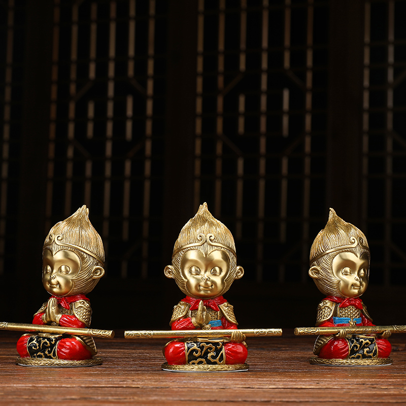 Pure copper Monkey King Monkey King car ornaments car fighting god of war Buddha bronze monkey living room office high-end