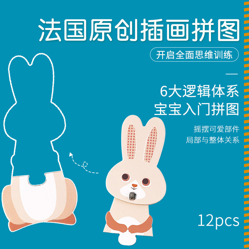 Fun animal matching puzzle 2-year-old baby DJECO entry-level large block simple infant children's educational toys