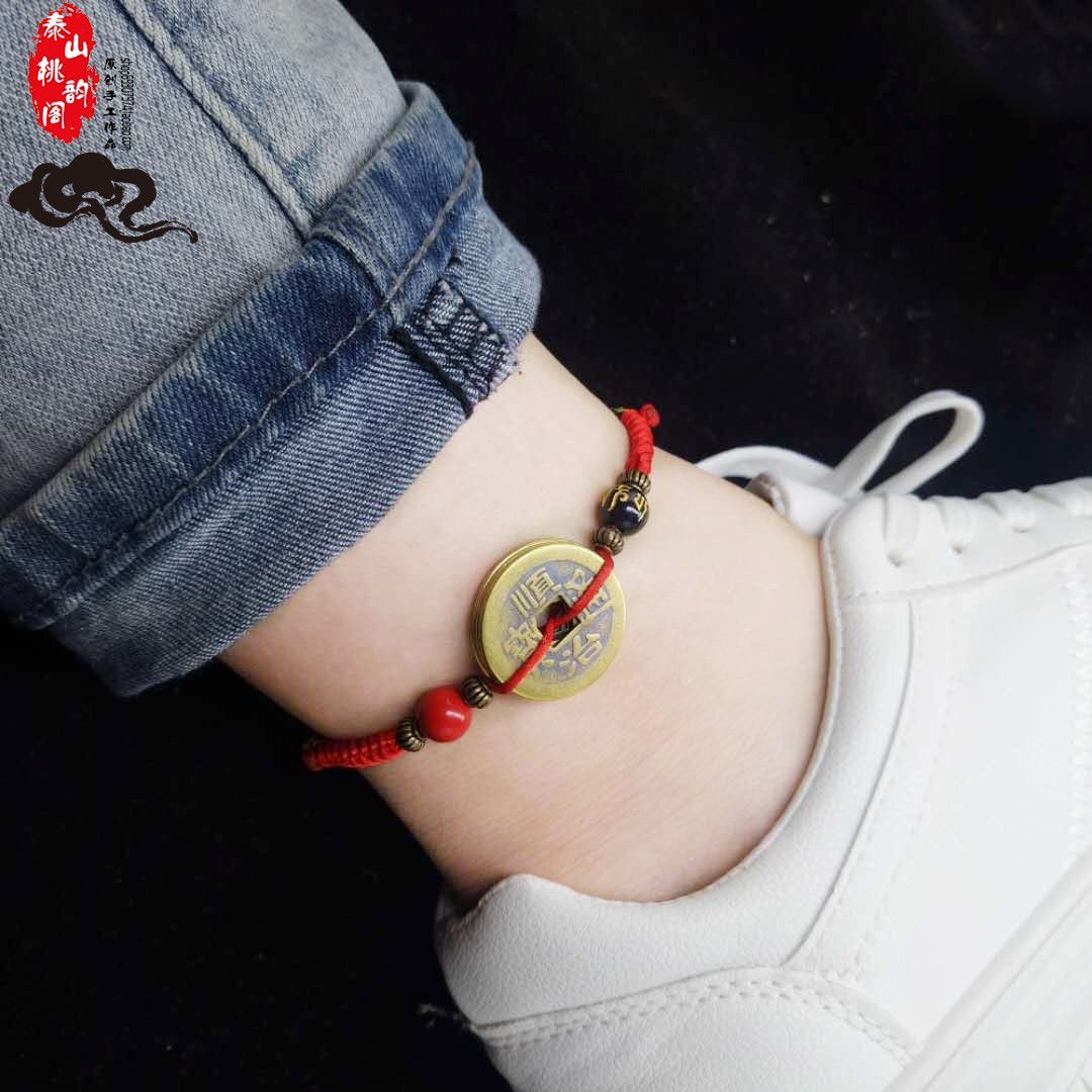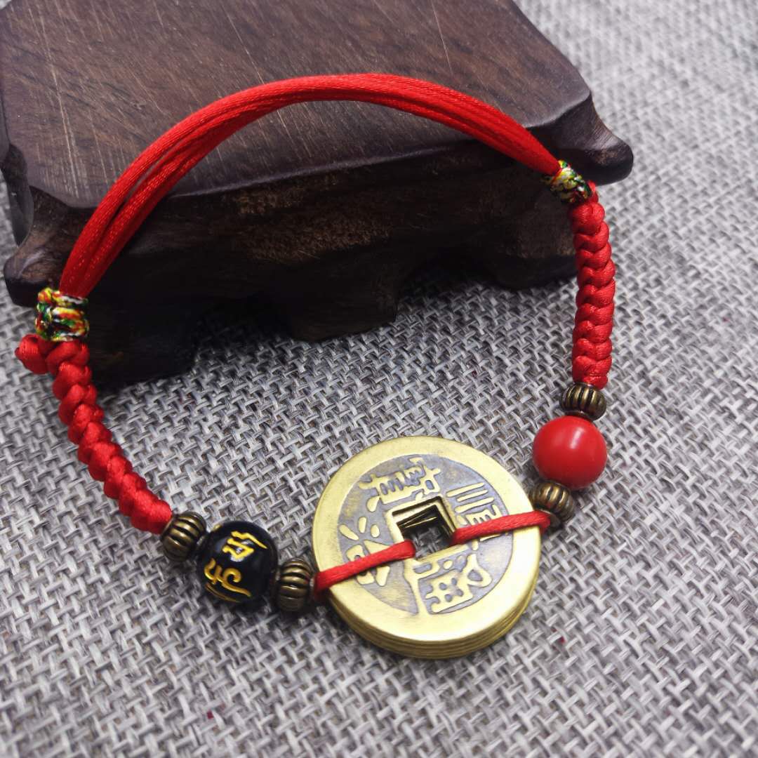 2022 Year of the Tiger Five Emperors Coin Copper Coin Hand Cinnamon Red Rope Anklet Benming Year Tai Sui Rope Colorful Rope Safe Hand Chi