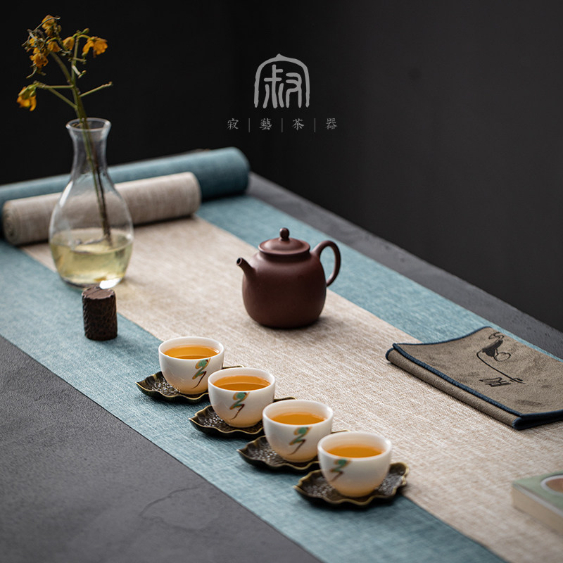 Silent art Japanese Zen fabric tea mat home cotton linen high-end Chinese style tablecloth table flag tea table mat cloth waterproof