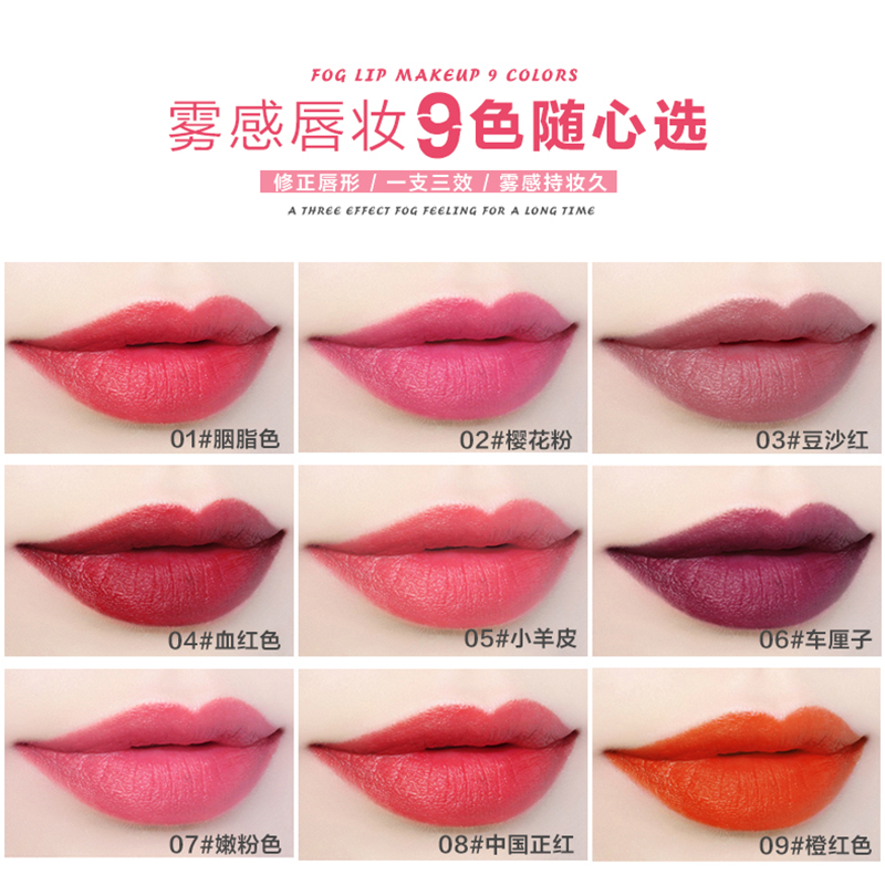 01#胭脂红 beheaded colors 02#樱花粉 03#豆沙色 04#血红色 positive red 05#小羊皮 nude color 06#大樱桃色 07#嫩粉色