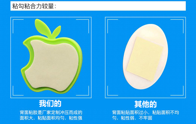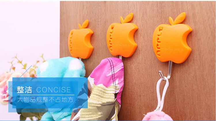 White ash wall strong sticky hook stick wall hook sticky stainless steel fine hook color plastic hook apple sticky hook