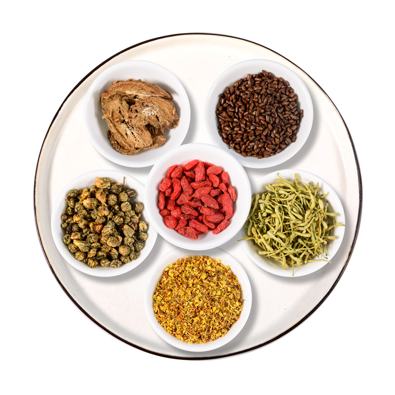Cassia, Burdock root, Osmanthus, Wolfberry, Chrysanthemum, Honeysuckle