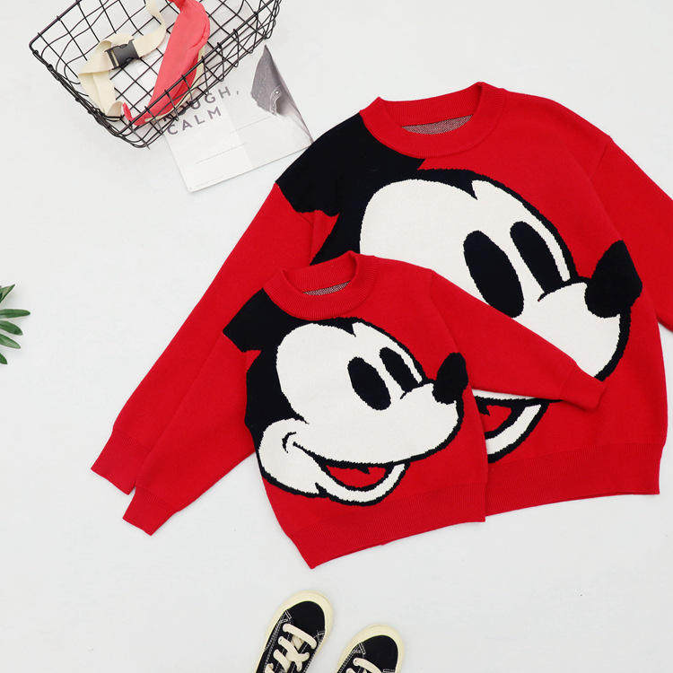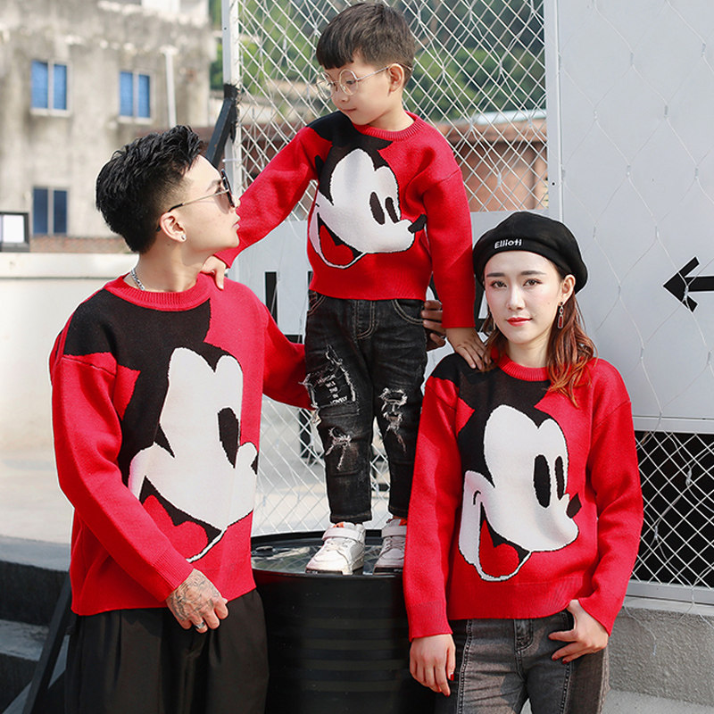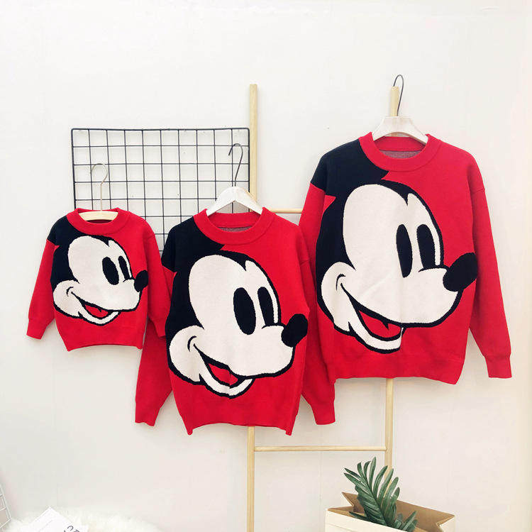 Mickey New Year parent-child outfit New Year suit A family of three and four mother and son mother and daughter foreign school Korean version of the red sweater winter dress