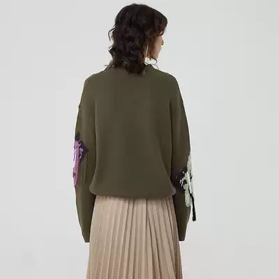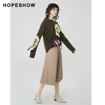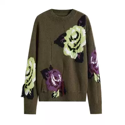 Red Sleeve hopeshow Sweater Women's Winter New Jacquard Round Neck Pullover Wool Knitting
