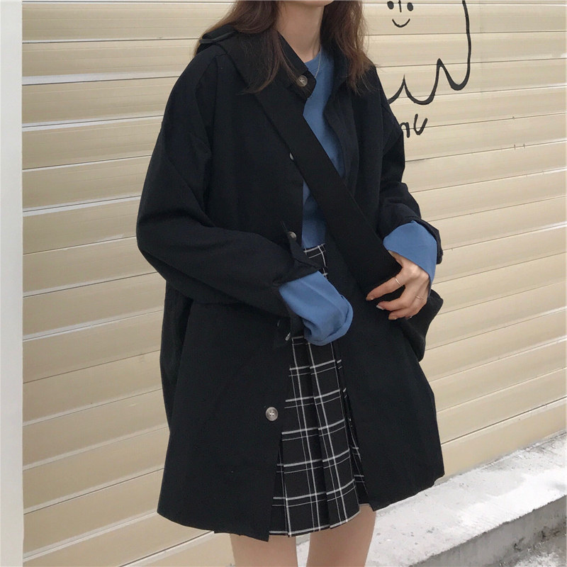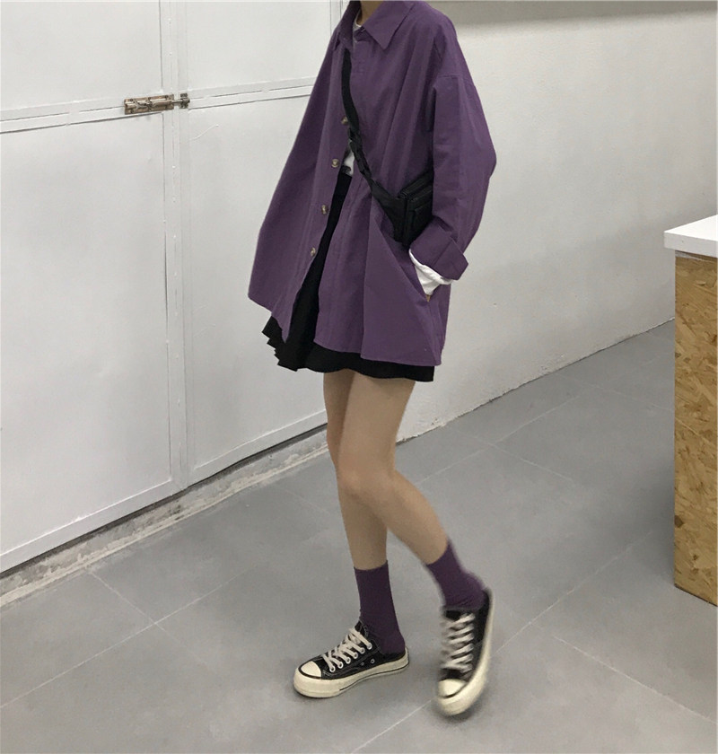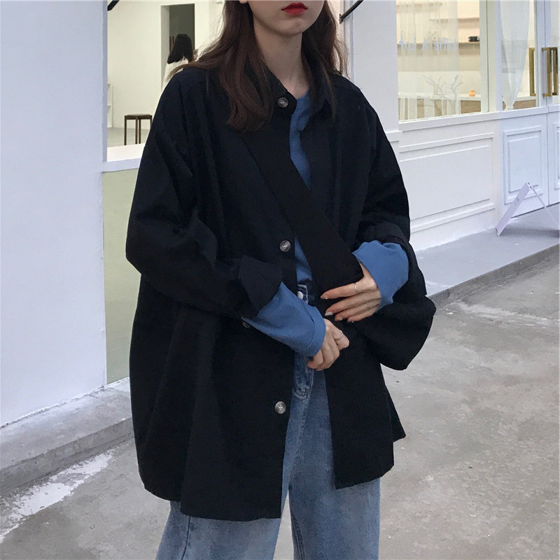 Super fire cec long-sleeved shirt women's spring and autumn new ulzzang middle and long version Korean version retro lining jacket jacket students