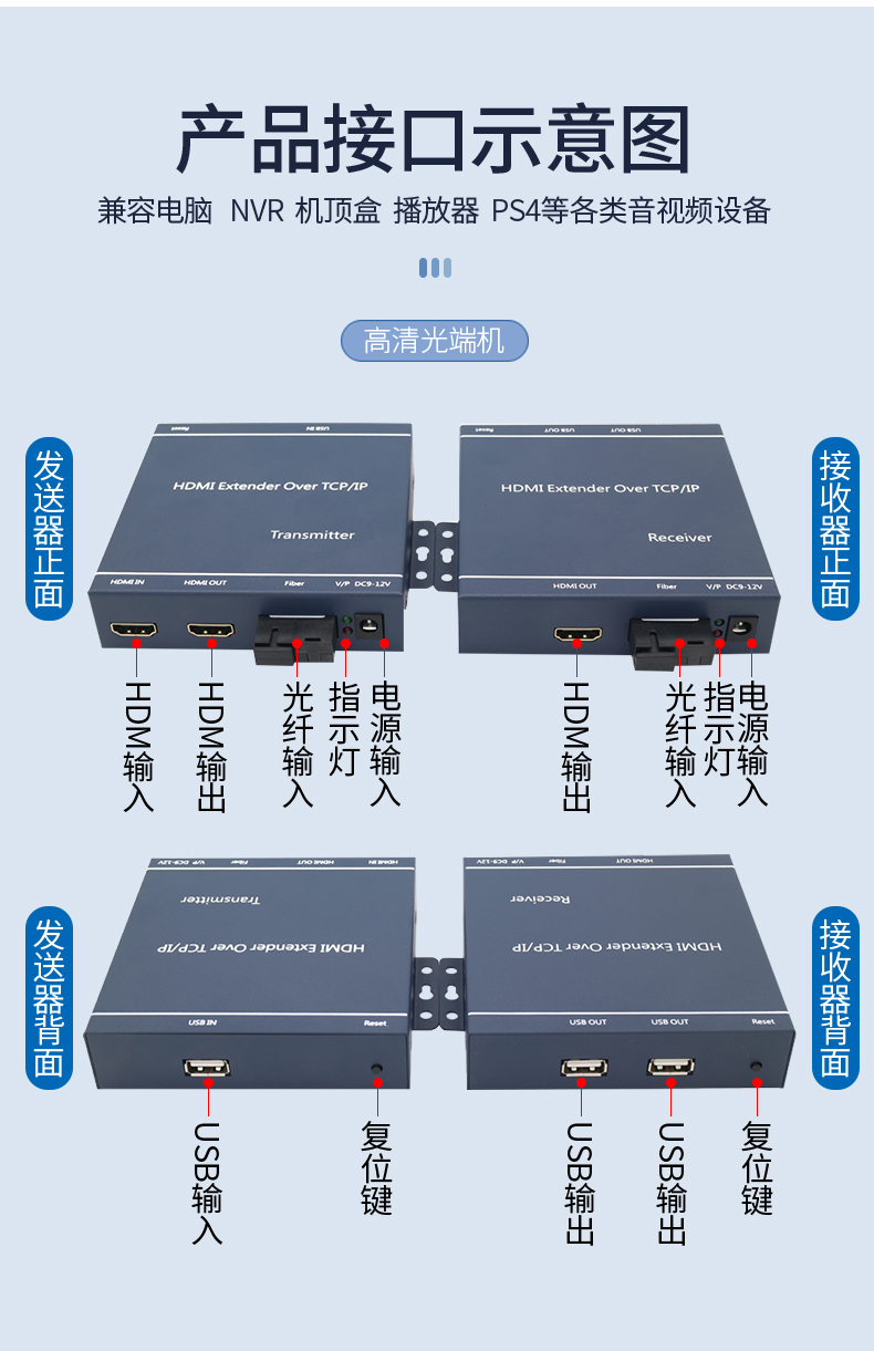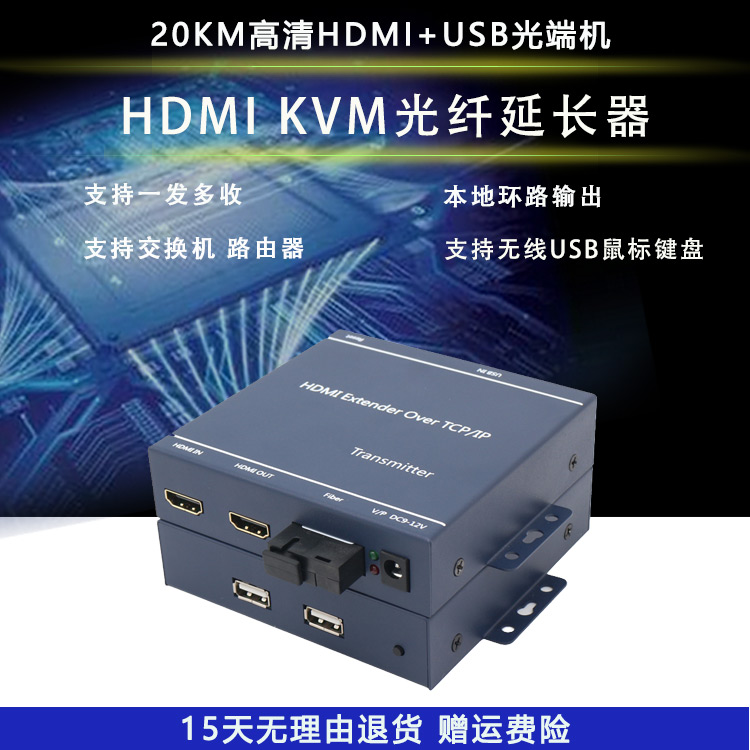 High-definition HDMI optical transmitter USB sliding mouse keyboard KVM fiber transceiver transmitter 1080P4K light turns 20KM
