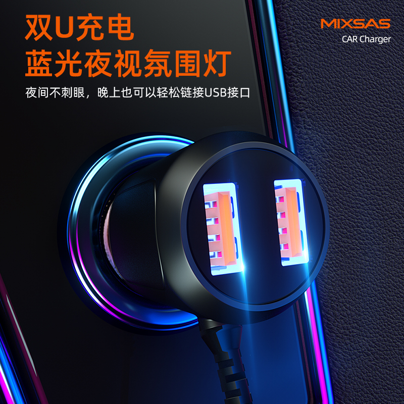 Driving recorder power cord Dual USB port connection cable GPS car charger cigarette car charger plug conversion cable