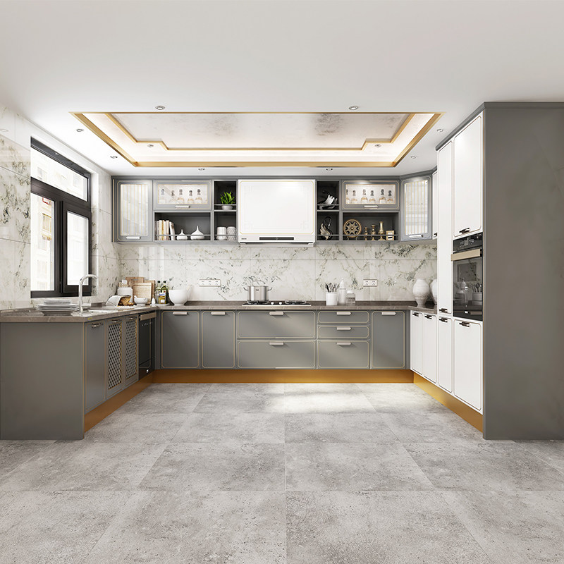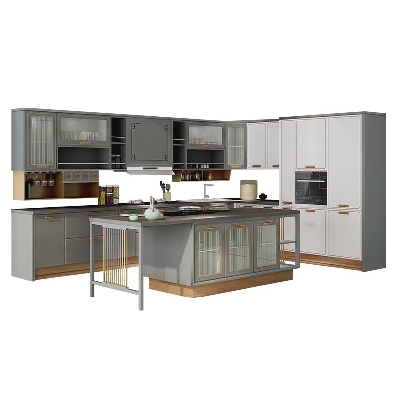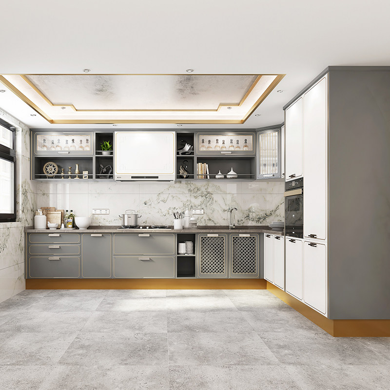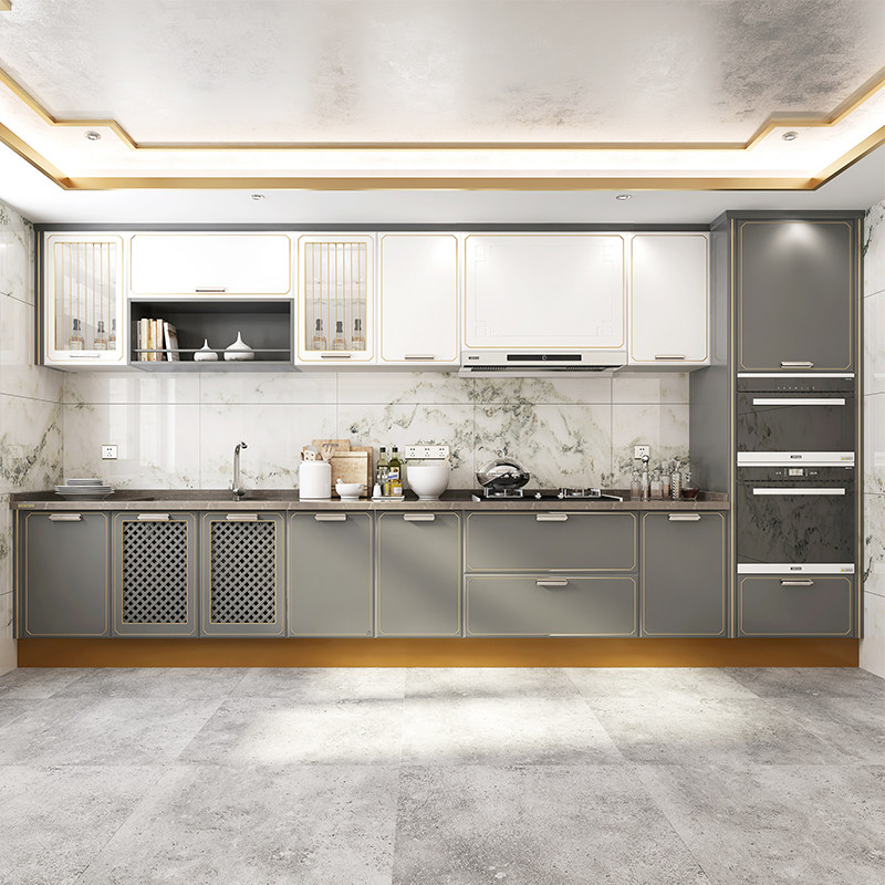 Oupai overall whole cabinet?Custom-made new Chinese Lanfu prepaid gold kitchen decoration open quartz stone countertop