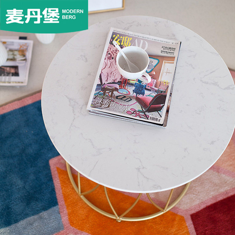 Net red coffee table marble Nordic light luxury simple ins personality creative household iron round coffee table combination