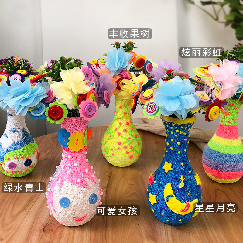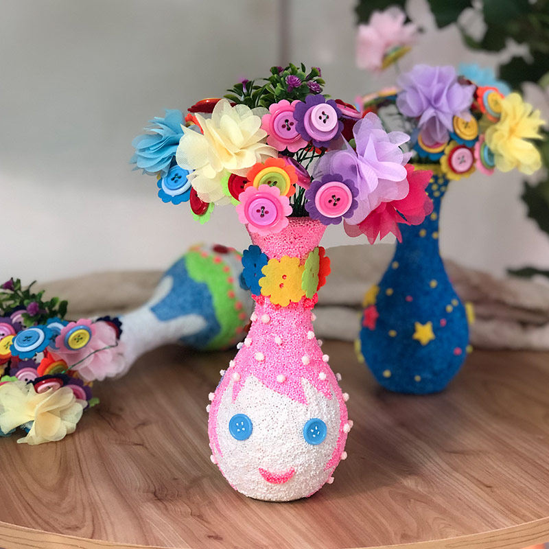 Mother's Day Gift Children manually make DIY Vase Button Material package for primary school girls snow cement toys