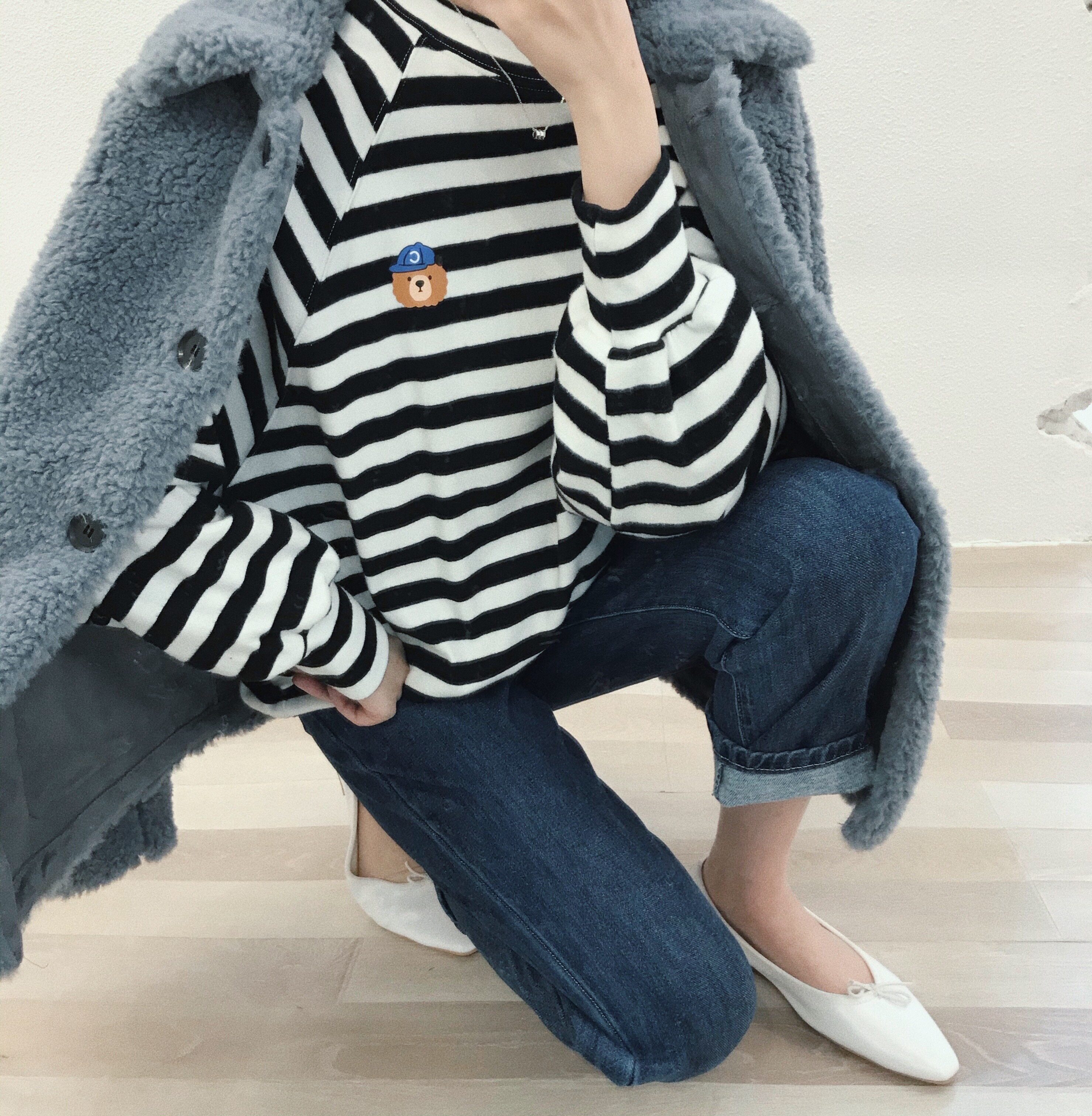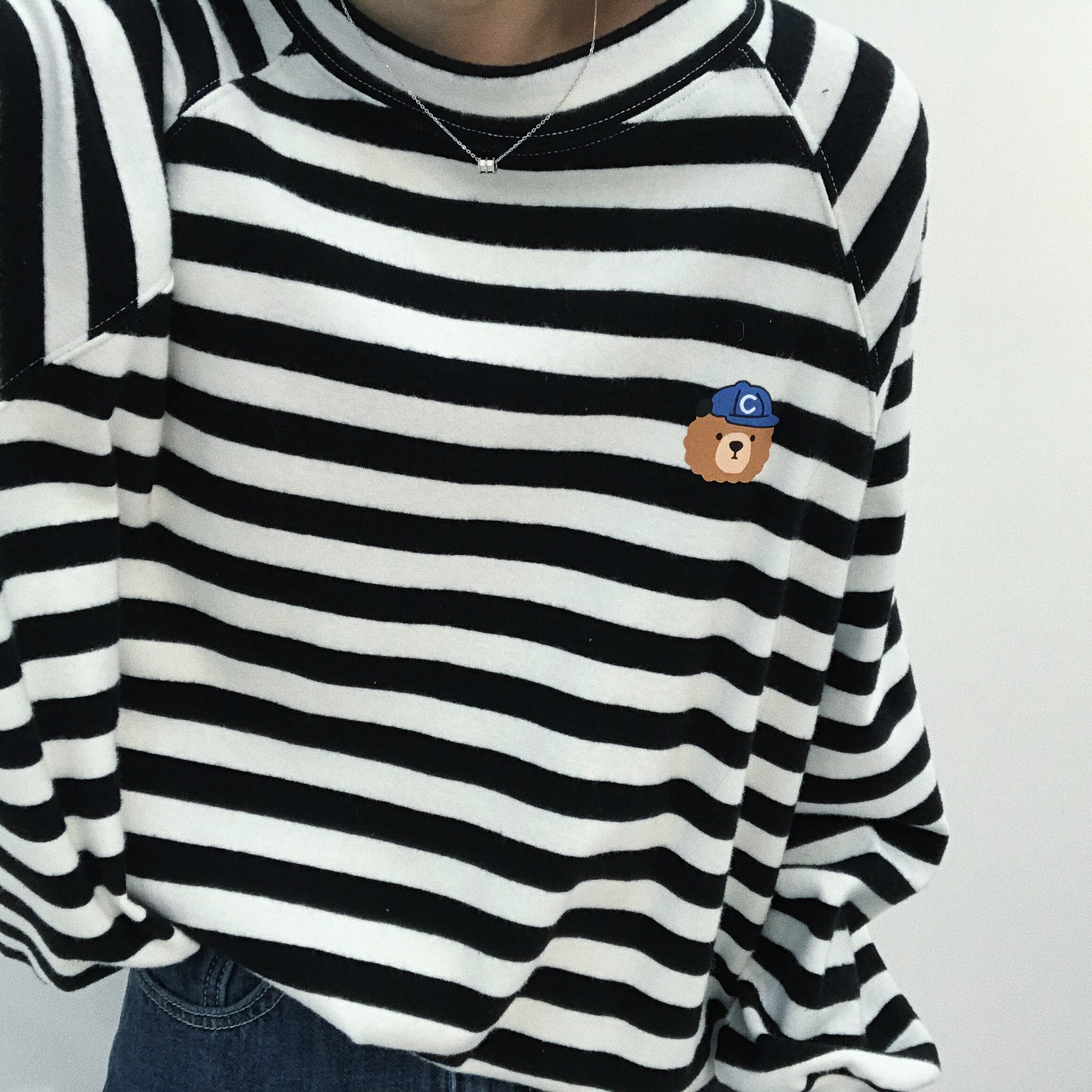 Great Meng Winter New Pinstripe Control Must Take Down Cute Little Bear Stripe Brush Fur Loose Texture T-shirt Blouse