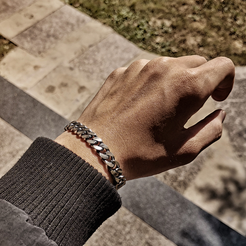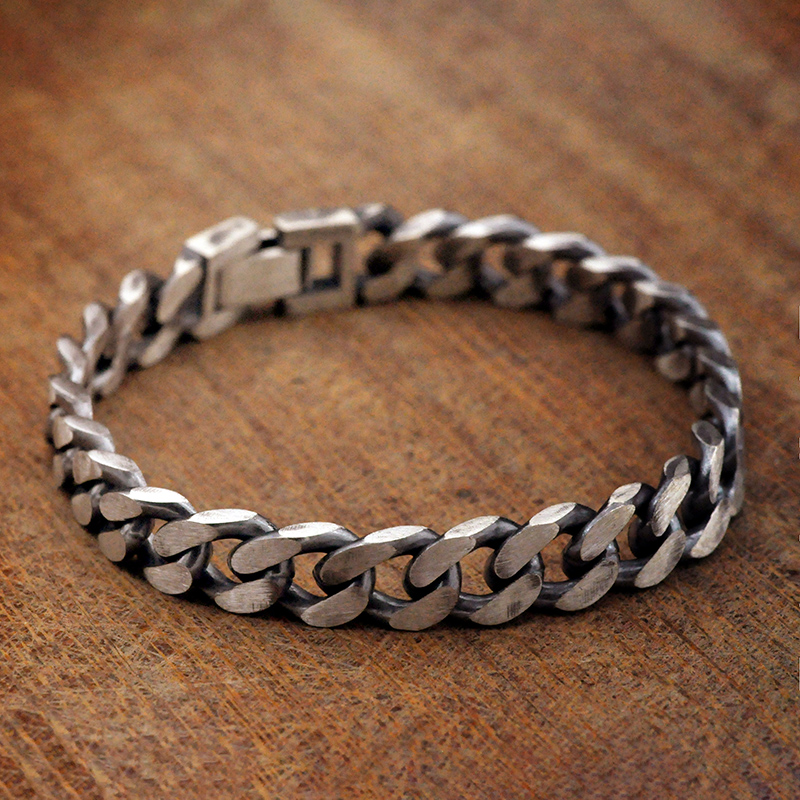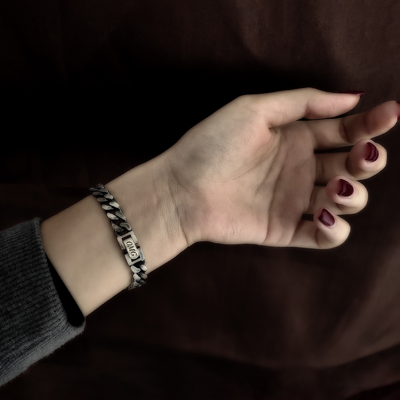 S925 sterling silver old Thai silver vintage matte bracelet personality trendsetter men and women tank silver bracelet send boyfriend gift