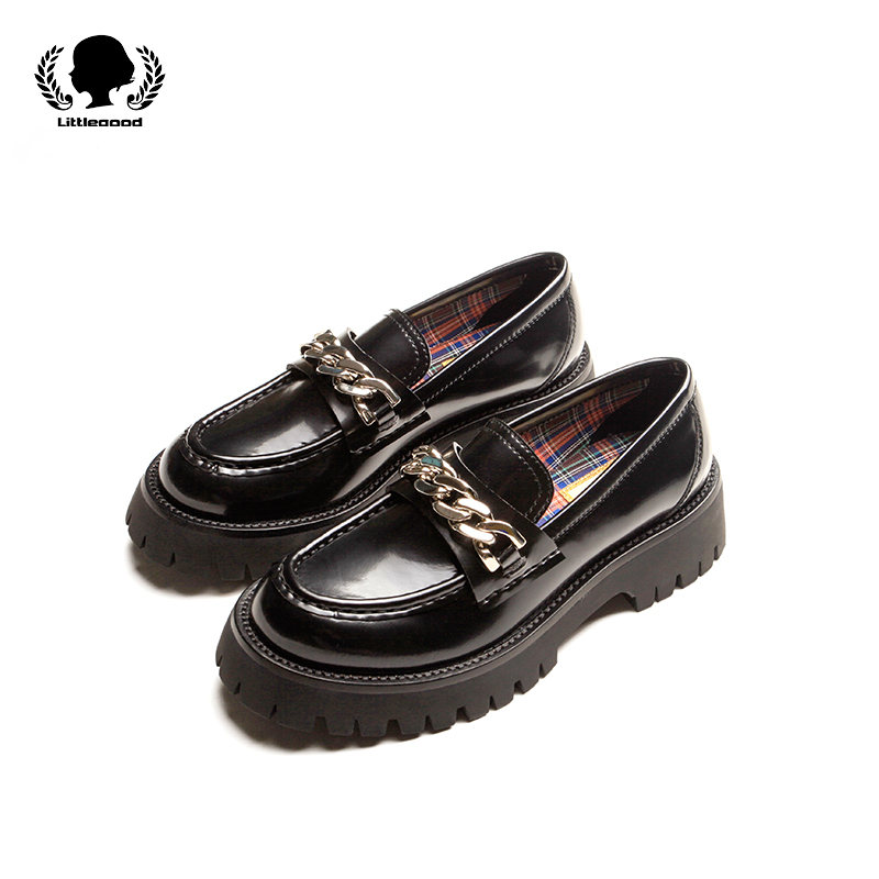 littlegood new British style loafers women's bright surface thick bottom increased chic small single shoes college style all-match