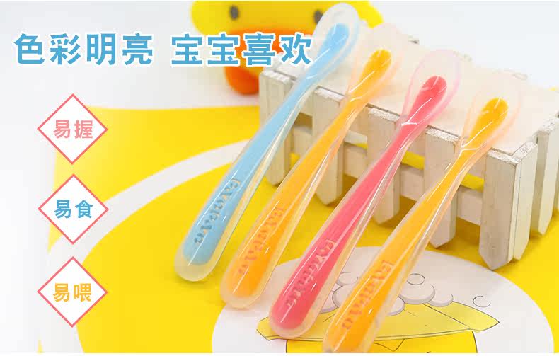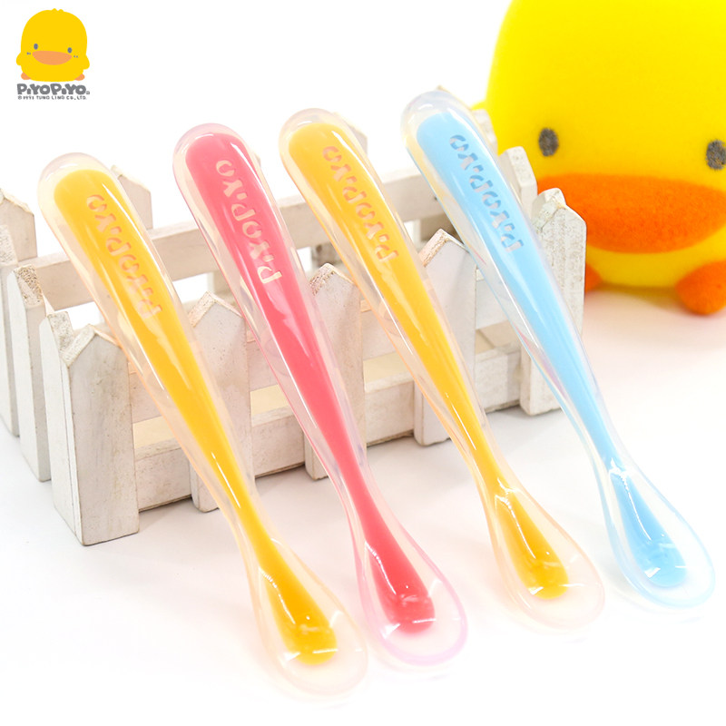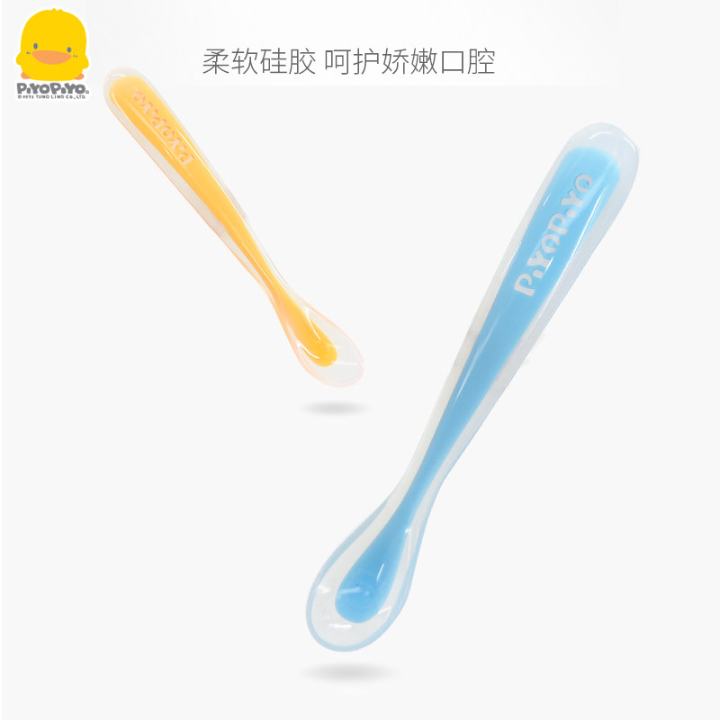 Yellow duckling baby silicone spoon baby soft spoon soft head small spoon newborn supplies water non-staple food tableware