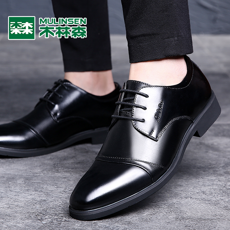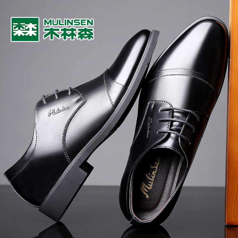 Mulinsen men's shoes 2022 winter leather business formal leather shoes men's British casual black inner heightening shoes