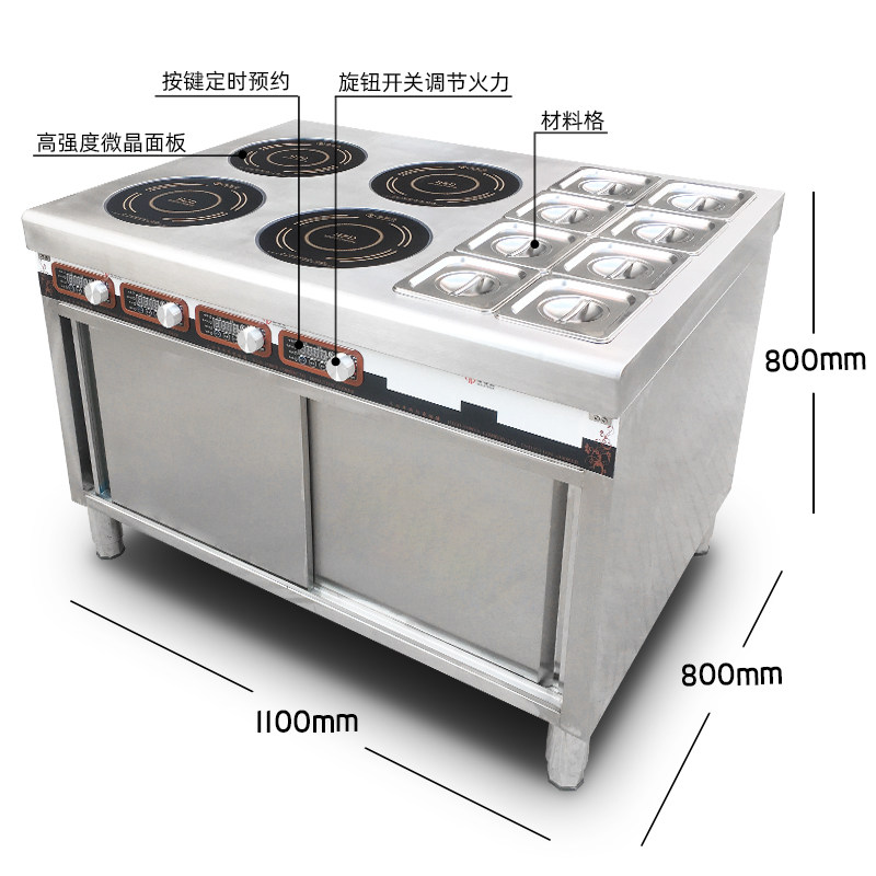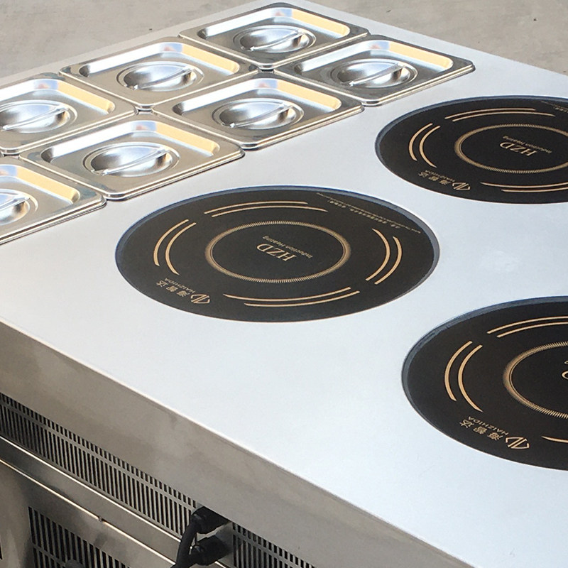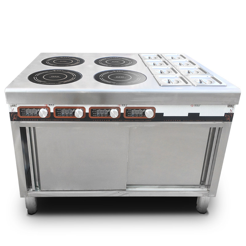 Hizhida Commercial Induction Cookers Multi-Head Saucepan Oven Four Eyes High Power 3500w * 4 Heads Cabinet With Material Plaid