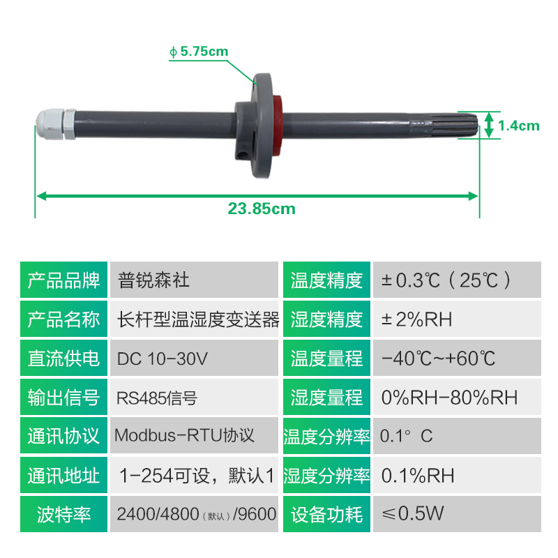 Temperature and humidity transmitter long rod flange 485 real-time monitoring ventilation industrial-grade high-precision duct sensor